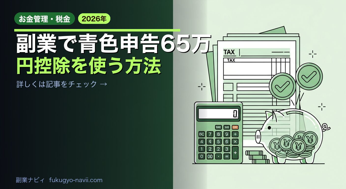副業をしているなら、青色申告の65万円特別控除は絶対に使うべき節税制度です。うまく活用すれば所得税・住民税を合わせて年間10万円以上の節税になることも。